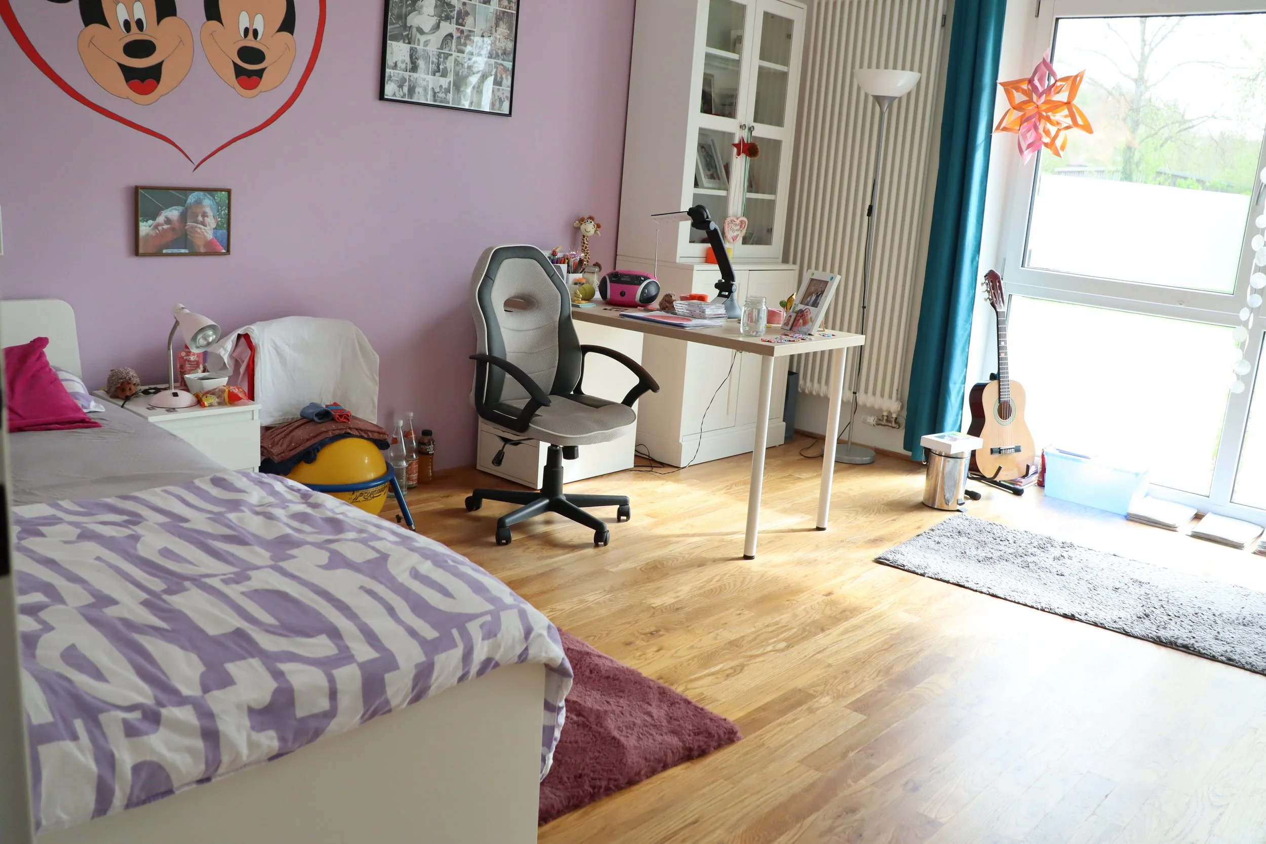 Jede/r Bewohner/in hat ein eigenes Zimmer, das nach eigenen Wünschen gestaltet werden kann. Direkt vom eigenen Zimmer hat jede/r einen Zugang zum Bad, das sich mit einer anderen Person geteilt wird.